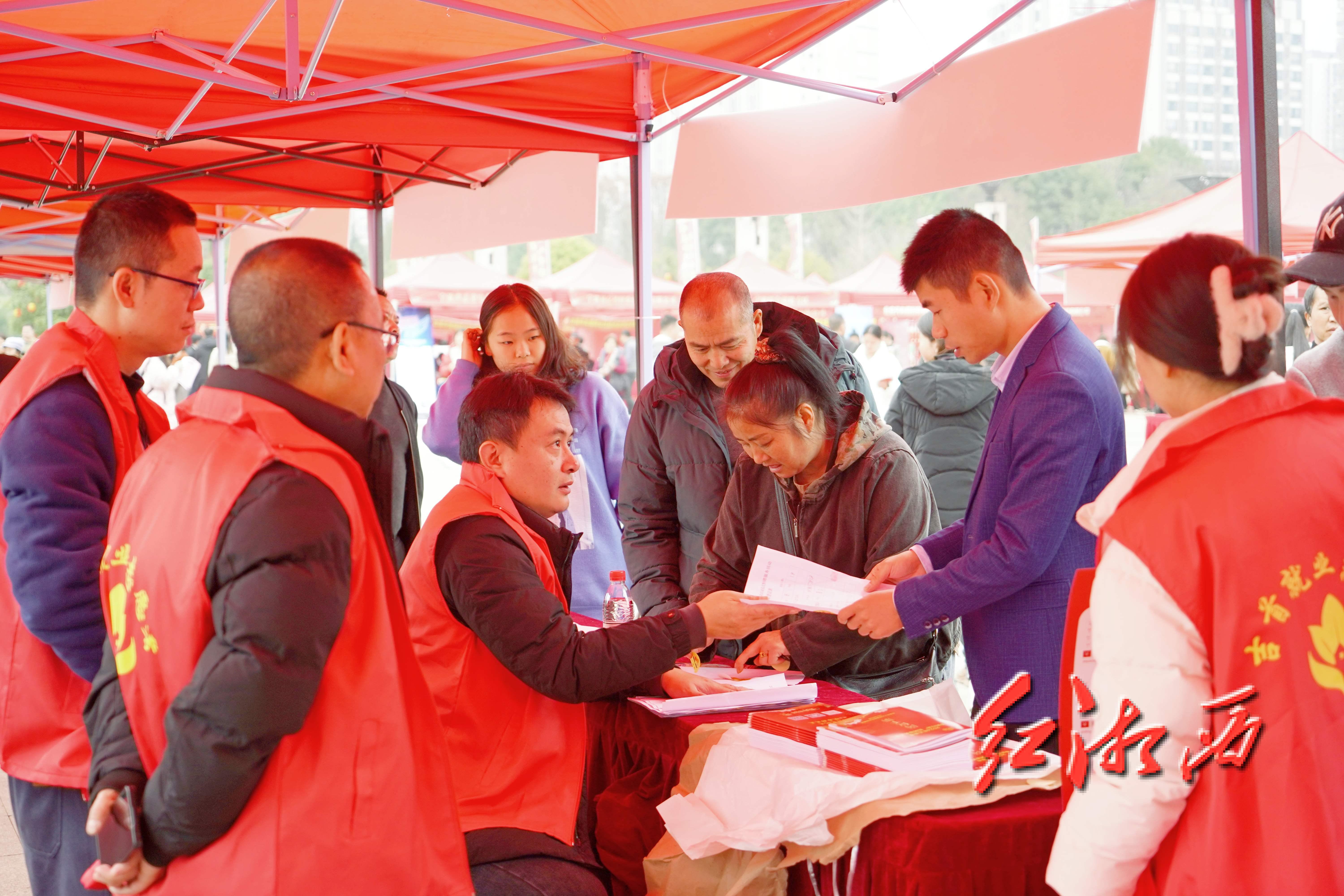 2月19日,2024年湘西州“春風行動”系列服務活動在吉首市世紀廣場啟動。本次“春風行動”以“春風送崗促就業,精準服務助發展”為主題,228家企業現場招聘,其中州內115家、州外113家,提供就業崗位4.6萬個,涵蓋零售、制造、電力、教育、餐飲、金融、電商等多個行業,吸引3000余名求職者現場咨詢。團結報見習記者 宿中元 攝影報道