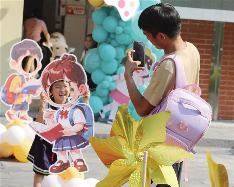 9月1日,在鳳凰縣箭道坪第一小學(xué),新入學(xué)的孩子在溫馨美好的校園里打卡拍照,迎接新學(xué)期的到來(lái)。 洪楊 楊雯欣 攝