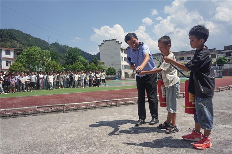 9月2日,永順縣靈溪鎮吊井九年制學校,消防人員現場講授滅火器的使用方法,強化師生消防安全意識,增強師生自救自護能力。 吳華 攝