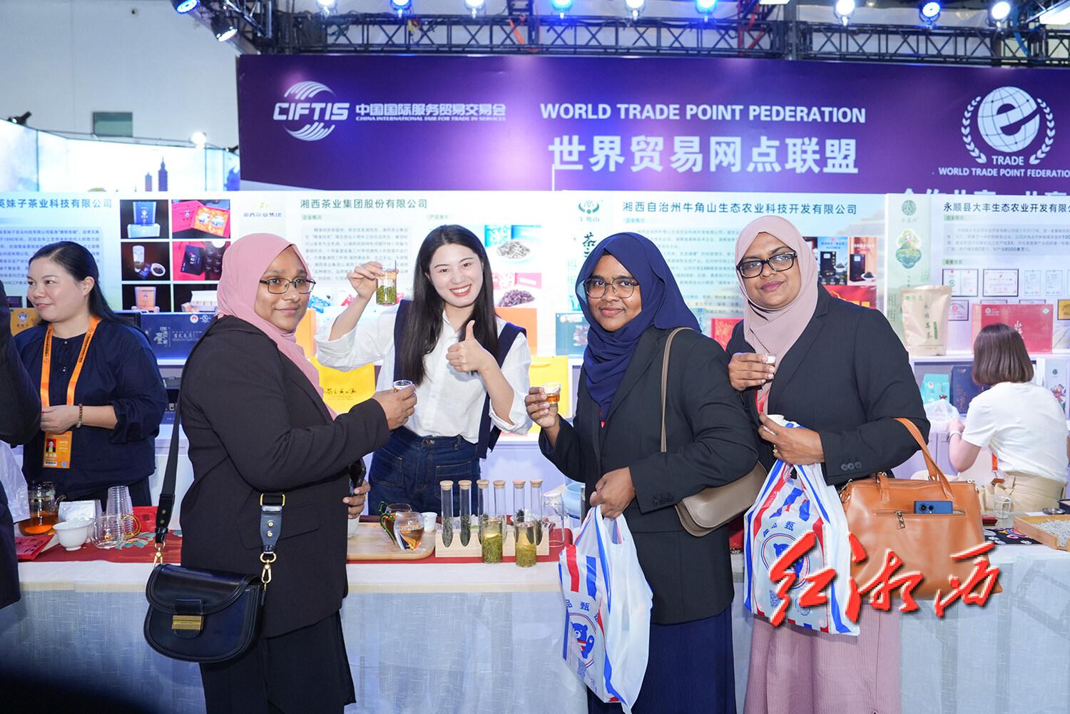 各國參會嘉賓品嘗湘西茶,紛紛點贊。