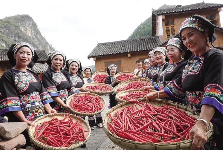 9月22日,在保靖縣碗米坡鎮沙灣村,村民在晾曬玉米、辣椒等作物。金秋時節,當地一派豐收景象,農民們滿懷收獲的喜悅歡度中國農民豐收節。