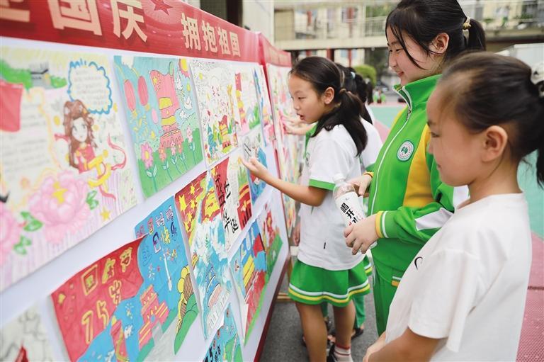 9月29日,州砂子坳小學的同學們在觀看手抄報展。該校舉辦“喜迎國慶 擁抱祖國”主題手抄報展覽,培養學生愛國主義情懷。 彭彪 攝