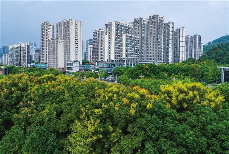 秋日,吉首市人民廣場旁的樹木開花,鳥兒在樹上歡唱,人們在樹下休憩,城市風景優(yōu)美、宜游宜居。 團結報全媒體記者 張謹 攝