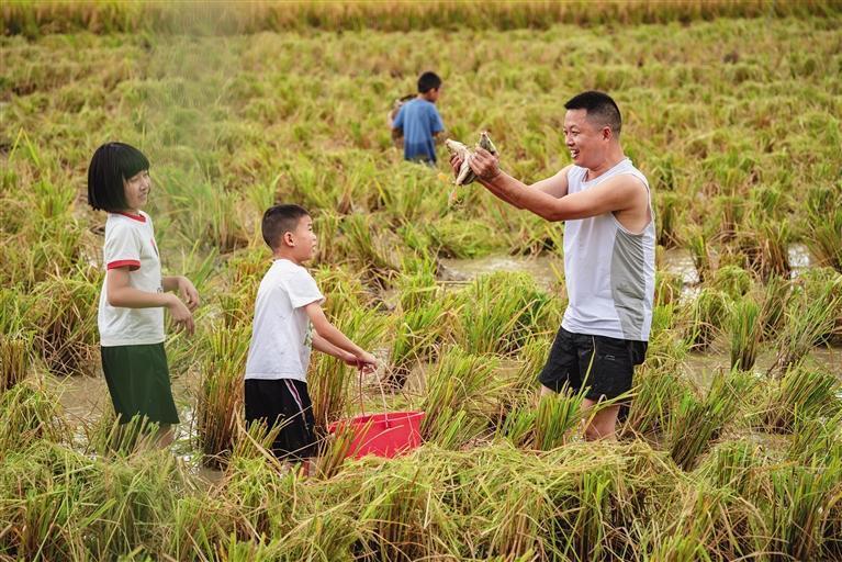 和爸爸一起捉稻花魚最開心。