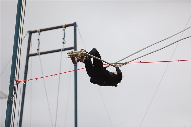 10月21日,秋千項目選手在湘西州體育中心秋千場地進行該項目55kg單人觸鈴比賽。