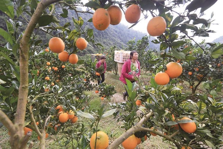 近日,龍山縣紅巖溪鎮卸甲村,果農在采摘臍橙。時下,當地種植的臍橙進入成熟期,村民們搶抓晴好天氣采摘,及時供應市場。 曾祥輝 劉潤 攝