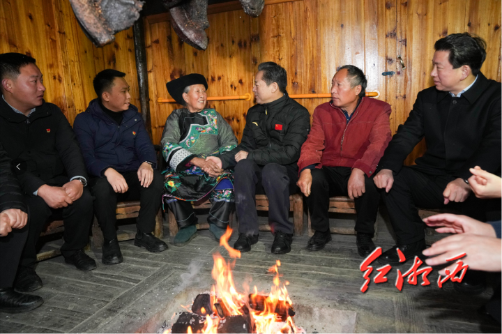 紅紅的火苗在火坑里歡快地跳動,炕上大塊臘肉和串串香腸在火苗的烘烤下散發著陣陣誘人香氣,展示著主人家一年的好收成,臘月二十的湘西農村,年味漸濃。“我們走親戚來了!”在石欄鎮朋巖村,虢正貴先后來到聯系戶龍明高、困難群眾龍樹文和困難黨員龍遠上家中,與他們圍坐一團拉家常、聊發展,到房前屋后、廚房菜園實地查看生活環境和生活起居情況。虢正貴詳細詢問他們過去一年經濟收入情況和當前生產生活情況、身體情況,聽取他們新一年的想法和打算,給他們送上新年的問候和祝福,鼓勵他們堅定發展信心,把日子過得更加紅火。要求鎮、村以及駐村工作隊多關心困難群眾和困難黨員的生產生活,充分發揮基層黨組織戰斗堡壘作用和黨員先鋒模范作用,帶領村民們走向共同富裕。