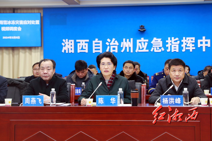 湘西網2月7日訊(全媒體記者 陳海泉)2月5日晚上,湘西州委副書記、州長陳華到州應急指揮中心,組織召開全州低溫雨雪冰凍災害應對處置視頻調度會,傳達學習省委省政府有關緊急通知精神,部署新一輪低溫雨雪冰凍災害應對工作,深入吉首市一線現場督導應對情況,慰問一線工作人員。她強調,要深入學習貫徹習近平總書記對低溫雨雪冰凍災害防范應對工作作出的重要指示精神,堅決落實省委省政府相關部署要求,嚴格做到“五個一律”,堅決打贏低溫雨雪冰凍災害攻堅戰。