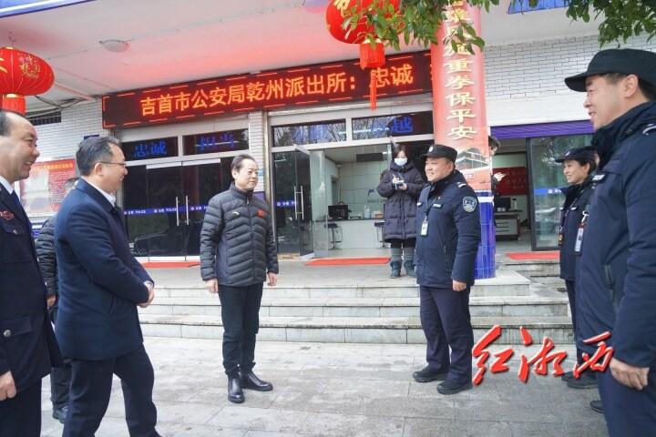 “守護老百姓生命財產安全是我們公安民警肩負的神圣使命,一定要時刻把老百姓的安危放在心上。”在吉首市公安局乾州派出所,虢正貴實地查看了值班大廳、備勤室,與民警親切交談,了解他們春節期間值班值守情況,囑咐大家要時刻保持警惕,特別是過年期間要注意規范煙花爆竹燃放的區域和時間,全力守護轄區安全,讓群眾過一個既熱鬧又安穩的春節。