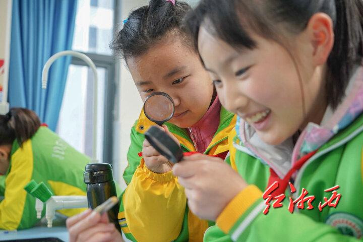 科學(xué)實(shí)驗(yàn)課上,同學(xué)們正在用放大鏡對(duì)種子進(jìn)行觀察。