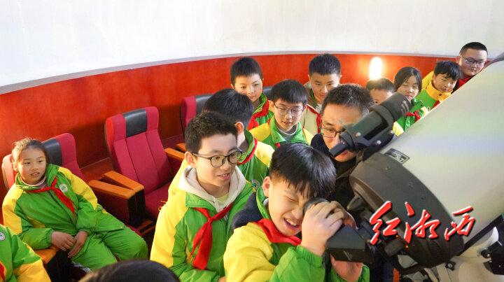 “同學(xué)們,我們現(xiàn)在要進(jìn)入科技天文館進(jìn)行參觀,大家可以對(duì)館內(nèi)的科學(xué)實(shí)驗(yàn)小設(shè)備進(jìn)行盡情的探索……”3月5日,正值驚蟄,位于湘西高新區(qū)的溶江小學(xué)內(nèi)暗香浮動(dòng),春意漸濃,同學(xué)們正有序參觀學(xué)校的科技天文館。
