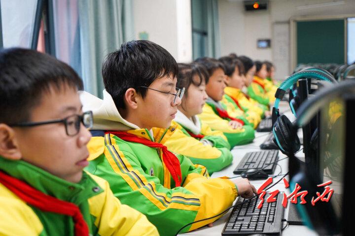 科學(xué)課堂上,溶江小學(xué)的學(xué)生們正在利用電腦進(jìn)行編程學(xué)習(xí)。