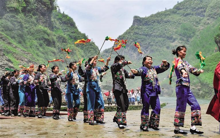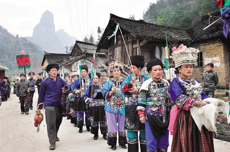 如今,花垣縣雙龍鎮十八洞村苗族同胞利用舉辦苗族接龍活動吸引游客,為民俗文化注入了新的活力。