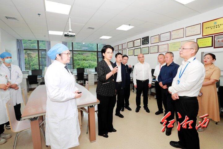 陳華還來到州人民醫院神經外科、兒科等科室調研。她勉勵相關科室醫護人員苦練本領、踏實工作,積極主動向湘雅三醫院的各位專家學習、求教,更好更快提升水平、服務患者、服務人民。