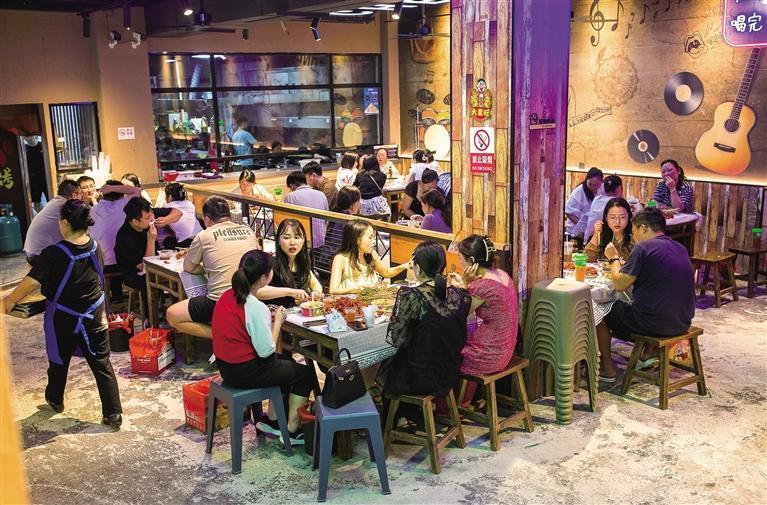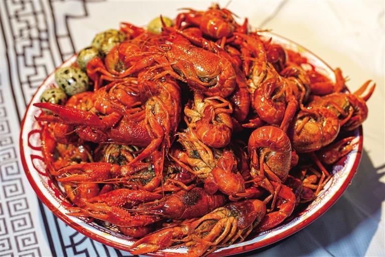 龍蝦的鮮美裝點著食客的夏夜。 團結報見習記者 宿中元 攝