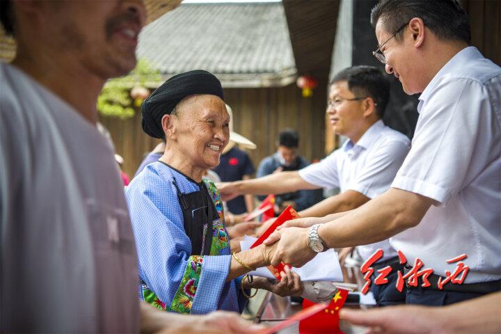 黨員代表施進蘭說:“11年來,我們參與見證了十八洞村的變化與發(fā)展。我們要感謝黨,感謝幫助過我們的很多部門、很多人,我們也要感謝自己,感謝每一位為村莊發(fā)展努力奮斗的父老鄉(xiāng)親!”