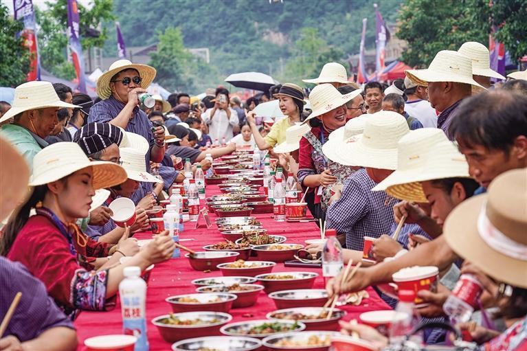 長龍宴讓游客感受到了苗家人的熱情好客。