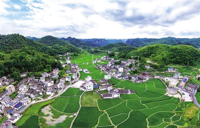 夏日,吉首市矮寨鎮排兄村稻田里一片新綠,微風吹過,禾浪翻滾,一幅美麗的自然田園風光呈現在眼前。