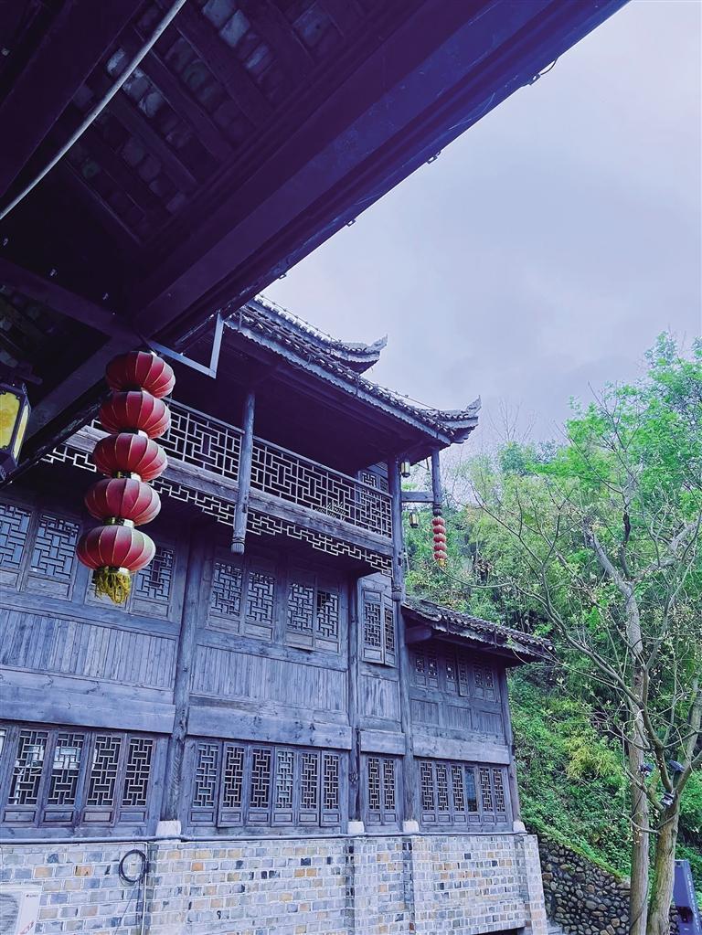 故鄉(xiāng)人大膽地設(shè)想,把木樓的一只腳吊在水里,參悟漁歌的密碼;另一只腳倚靠青山,被歲月賦予古老的年輪。
