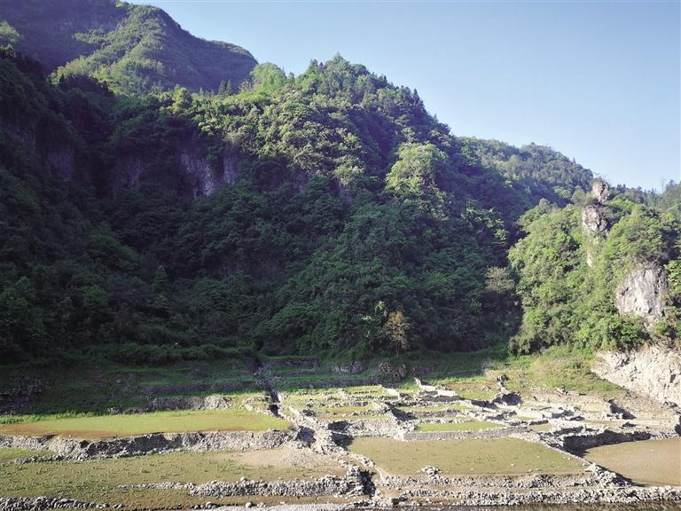 從黃石洞水庫大壩左側小路沿峽谷深入,湖水縈碧,石峰疊翠,古道曲曲折折,忽上忽下。沿途可見叢生的芭茅,翠綠的篁竹,茂密的山林和荒蕪的田野。還有高崖陡峭如削,幽溪清澈見底,野瀑飛流直下。這些山川億萬年來始終如一,這些草木千百年間因循輪回,沿著古道靜靜佇立。年復一年,看著無數人來來去去,許多事兜兜轉轉,從冷清到熱鬧,從喧囂到沉寂。