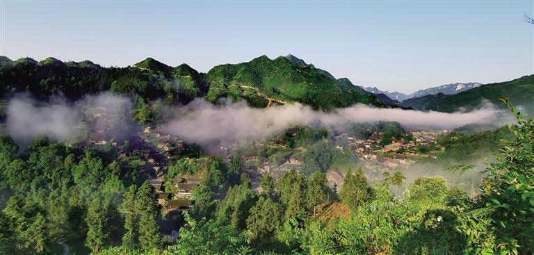 初秋時節(jié),驕陽熱情似火,走進保靖縣呂洞山鎮(zhèn),整潔的街道綠樹成蔭,古色古香的民居錯落有致,清澈的小河上白鷺飛翔。借助無人機俯瞰,山嶺連綿翠綠覆蓋,崖壁陡峭飛瀑流泉,萬畝茶園碧浪涌動,一個個村莊如瑪瑙樣鑲嵌在群山中,一條公路蜿蜒于村寨之間,構(gòu)成一幅生機勃勃的田園風(fēng)光畫卷。
