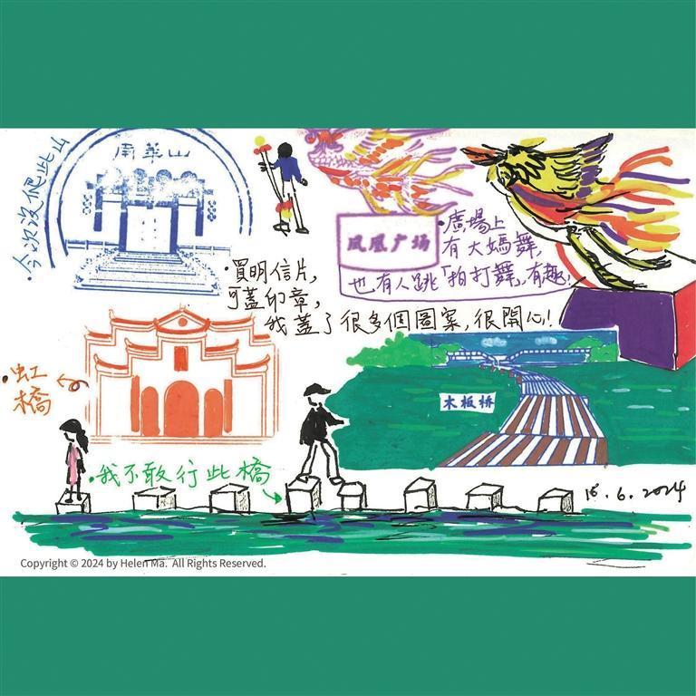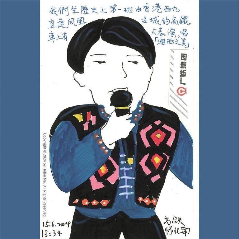 今年6月15日,香港西九龍至大湘西高鐵定制專線正式開通,乘坐高鐵來到鳳凰古城的香港旅客馬凱君一家人游玩后,對這次旅游體驗印象深刻,并親手繪制出25頁的鳳凰古城“旅游手賬”,記錄下重要的畫面和心理感受,呈現了鳳凰古城五彩斑斕、生動可愛的一面。