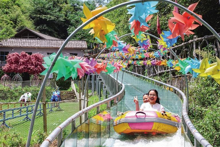 隨著城市生活節奏加快,家長們越來越意識到與孩子共度時光的重要性。于是,大坡村親子游項目應運而生,玻璃水滑道、兒童樂園、天空之境等新潮游樂項目在鄉村的土壤上長了出來。在風景宜人的大坡村體驗這些項目,還真別有一番趣味。