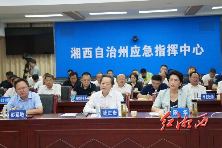 湘西網9月14日訊(全媒體記者 彭蕾)9月13日,湘西州委書記虢正貴主持召開全州中秋國慶假期安全防范視頻調度會。他強調,要進一步壓緊壓實安全生產責任,除隱患、防風險、促安寧,確保全州人民過上安定祥和的假期。州委副書記、州長陳華出席。州委副書記、花垣縣委書記廖良輝在花垣分會場參會。