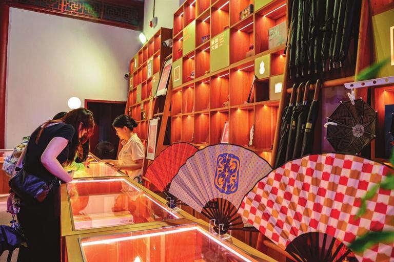 南岳大廟里精致的文創產品琳瑯滿目,讓游客挪不動步子。
