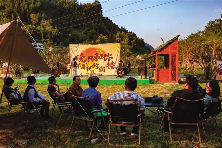 洽比村的草地間擺著桌椅,搭著幾頂帳篷,舞臺(tái)上樂隊(duì)高歌,為游客提供一處野餐、露營(yíng)、音樂會(huì)的場(chǎng)所。 團(tuán)結(jié)報(bào)見習(xí)記者 胡承鼎 攝
