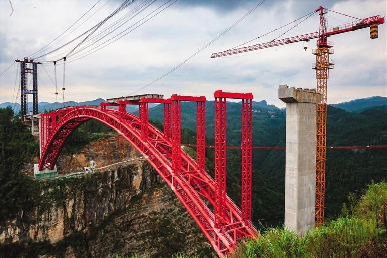 遷夯公路的控制性工程——涂乍河特大橋,也位于長潭河鄉境內。涂乍河特大橋橋面與河面高差達210米,全長412米,主跨252米,國省道相同橋型主跨長度位于湘西州第一,該橋也是湖南省首例采用拱座斜樁基礎的拱橋。目前,該項目在緊鑼密鼓地施工中,預計在2025年內,將實現全線貫通。