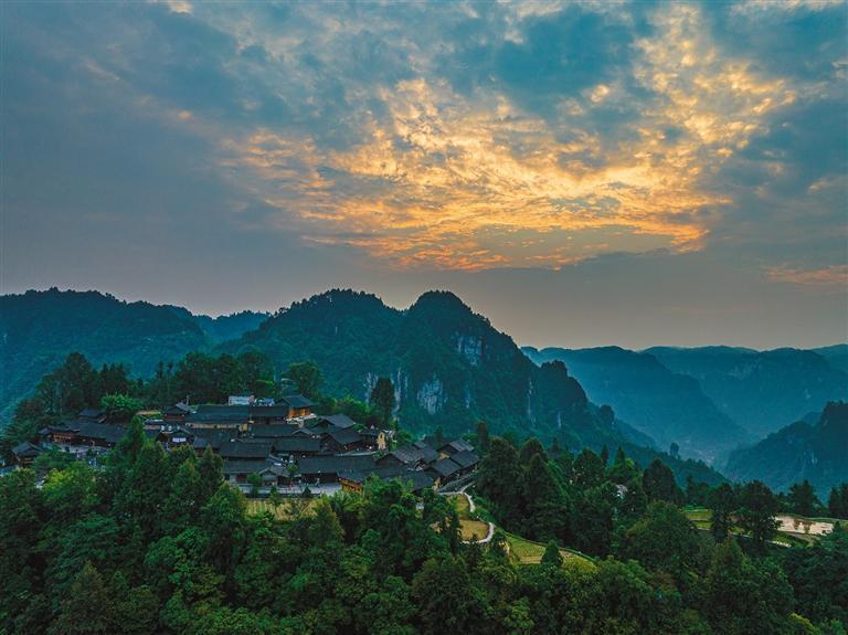 秋日,沐浴在朝陽里的花垣縣雙龍鎮十八洞村,屋舍田園點綴山間,盡顯豐收歡顏。 團結報全媒體記者 張謹 攝
