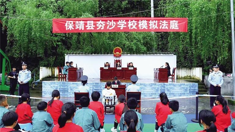 保靖縣人民法院在夯沙學(xué)校開展普法模擬法庭。