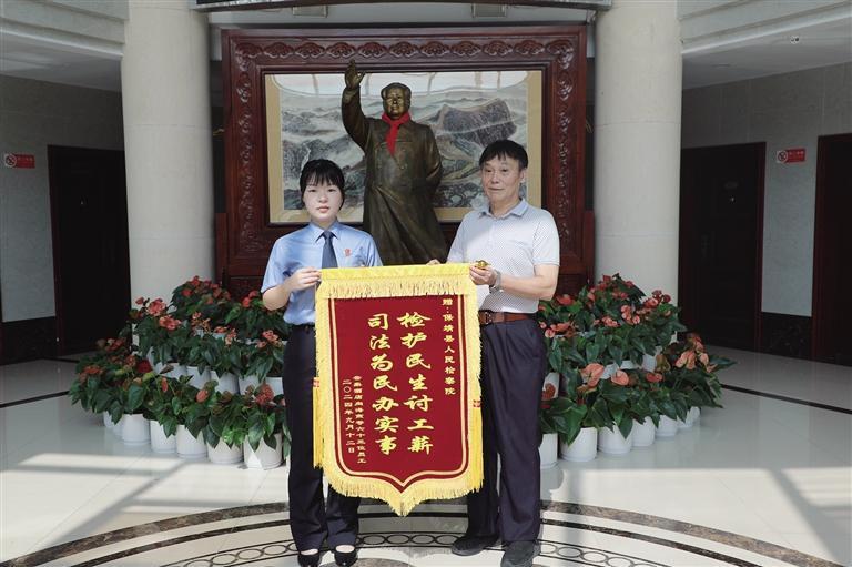 “非常感謝檢察官們,為我們討回了應(yīng)得的辛苦錢!”9月12日,保靖縣某酒店員工代表楊某某將一面印有“檢護民生討工薪、司法為民辦實事”的錦旗送到縣人民檢察院,感謝該院為他們63名農(nóng)民工討回了24萬余元勞動報酬。