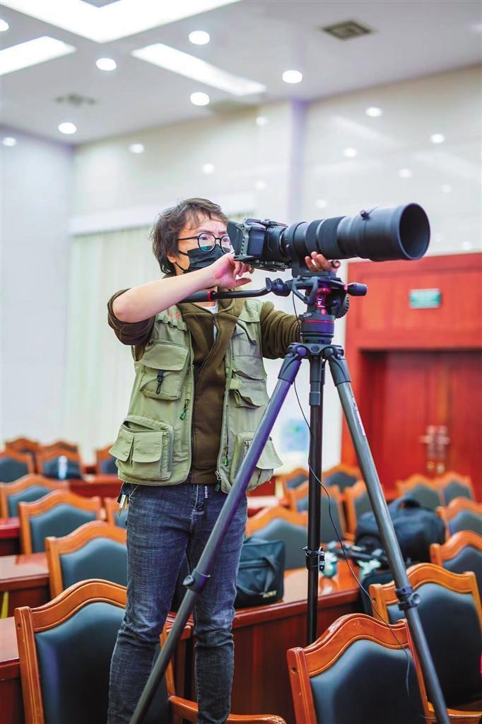2022年10月28日,《團結報》創刊70周年會議召開前,記者陳昊架起設備,做好錄像準備。