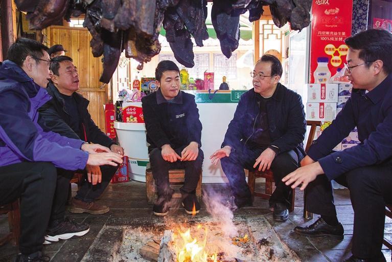 2023年1月29日,團結報社社長、總編輯田應明(右二)在花垣縣十八洞村采訪。