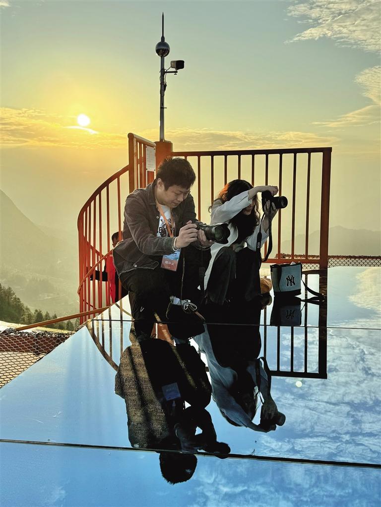 2024年11月7日,記者胡承鼎與伍珊珊在永順縣采訪第三屆湘西州旅游發展大會。