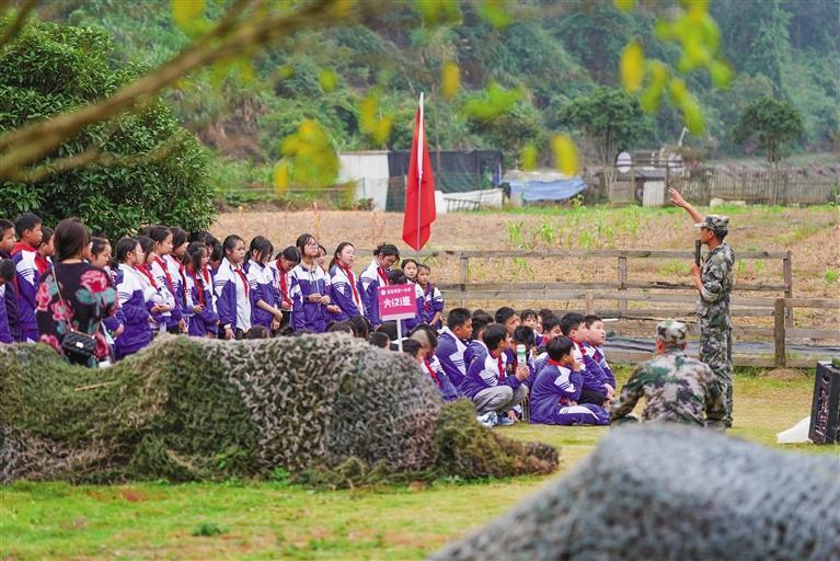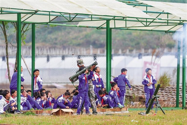 冬日暖陽下,隨著一聲聲沖鋒號的響起,一場場“激戰臘子口”“飛奪瀘定橋”等戰斗先后在勤豐·淘野研學文旅基地內打響。11月12日,吉首市第一小學的500余名學生在老師的帶領下,來到這里開展研學活動。
