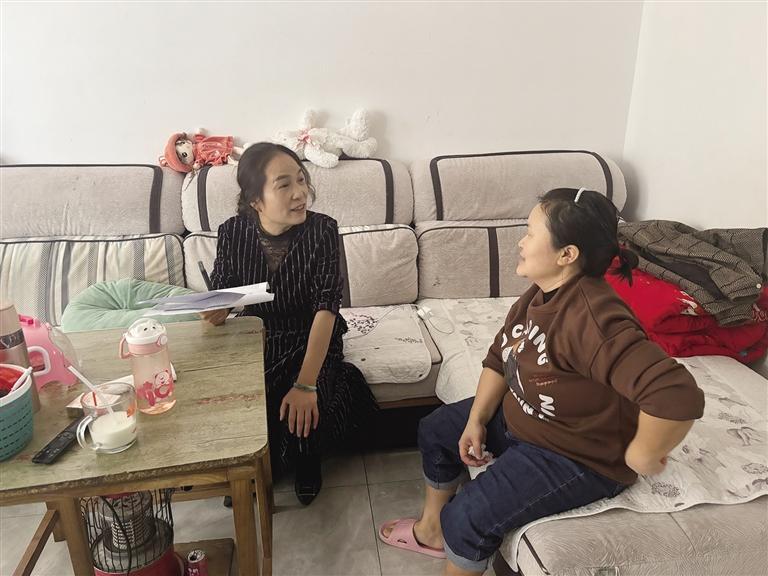 王澤蓉(左)走訪社區群眾向廷芳。 圖片由保靖縣委宣傳部提供