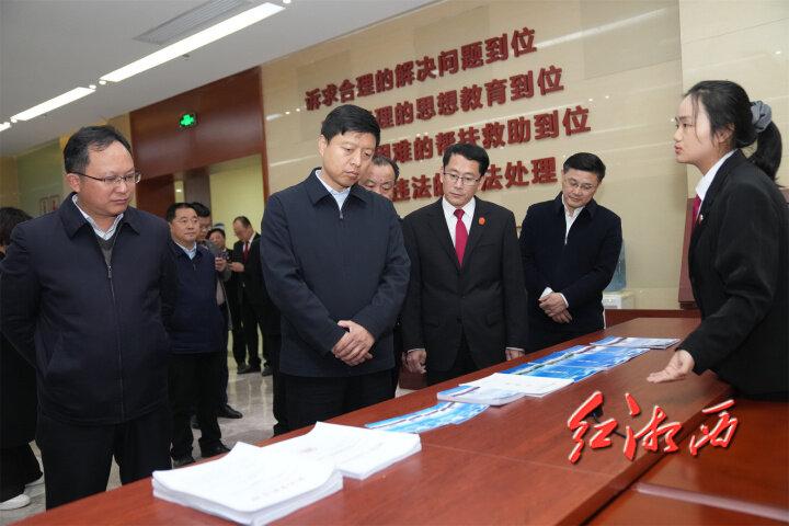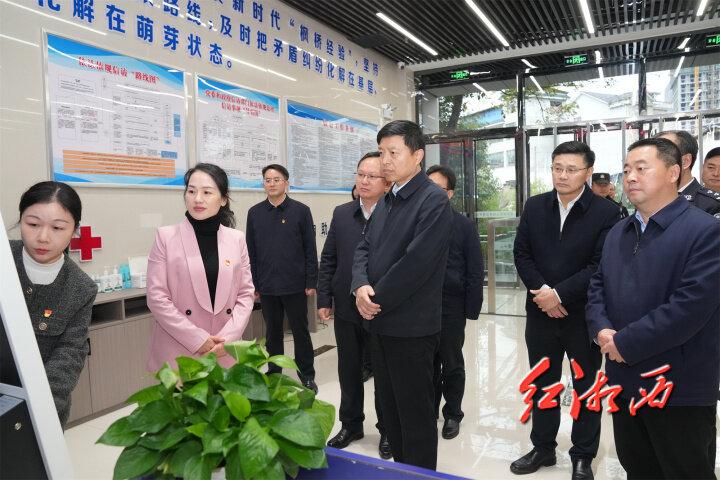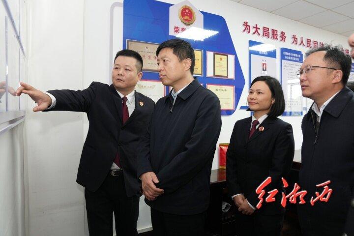 湘西網11月27日訊(全媒體記者 彭蕾)11月26日,湘西州委書記劉濤到政法系統調研。他強調,要深入學習貫徹習近平法治思想和習近平總書記關于政法工作的重要論述,忠誠履職、恪盡職守,敢于斗爭、善于斗爭,在維護國家安全和社會大局穩定、保障和促進社會公平正義上彰顯新擔當新作為。州級領導向邦偉、彭延敏、周燕飛、彭建民、李麗參加調研。