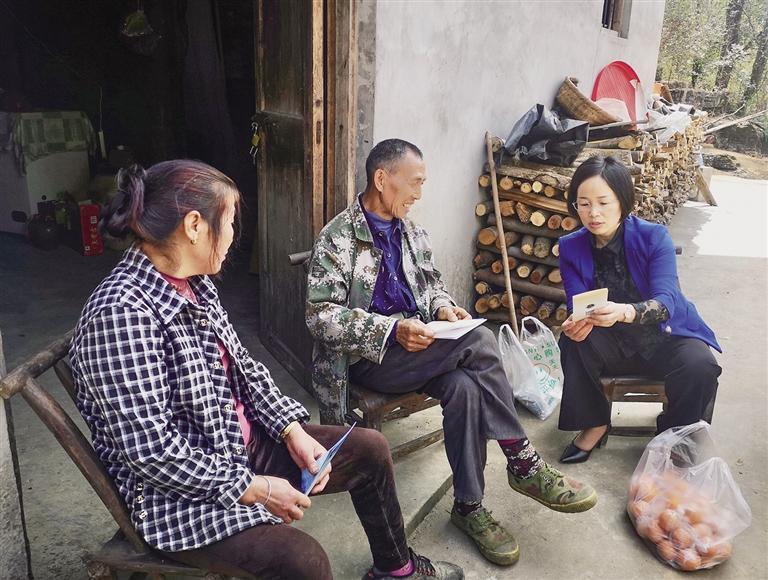 2024年4月,湘西州醫療保障局黨組書記、局長程三艷(右一)到鳳凰縣水打田鄉吊巖村農戶家中宣傳醫保政策。