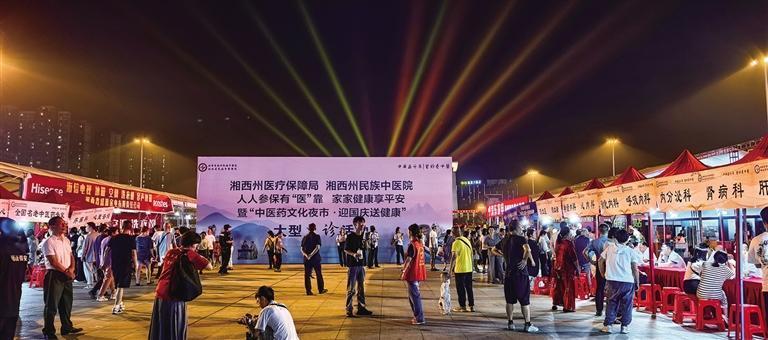 2024年9月29日,湘西州醫療保障局與州民族中醫院、國家稅務總局湘西州稅務局、“醫惠保”承辦公司共同攜手開展“人人參保有‘醫’靠 家家健康享平安”暨“中醫藥文化夜市·迎國慶送健康”大型義診活動。 本組圖片由 湘西州醫療保障局 提供