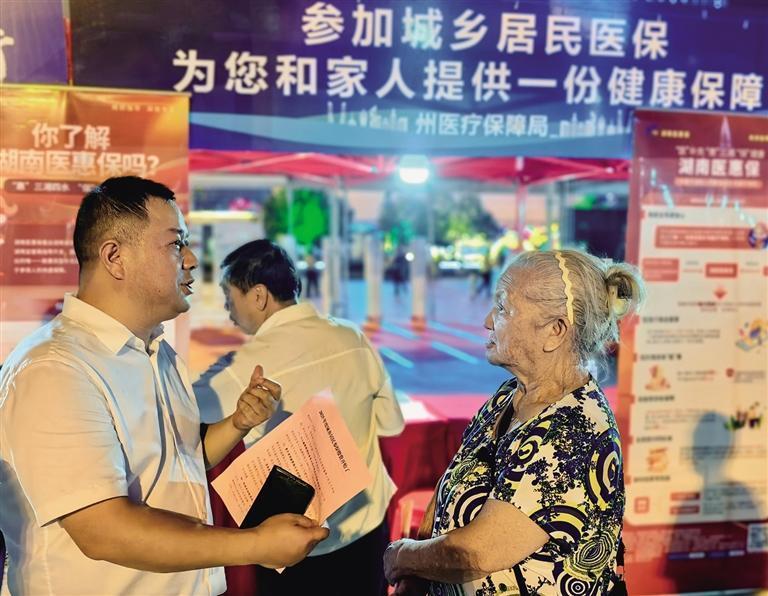 2024年9月29日,湘西州醫療保障局與州民族中醫院、國家稅務總局湘西州稅務局、“醫惠保”承辦公司攜手開展“人人參保有‘醫’靠 家家健康享平安”暨“中醫藥文化夜市·迎國慶送健康”大型義診活動。活動中,工作人員向居民大力宣傳醫保政策。