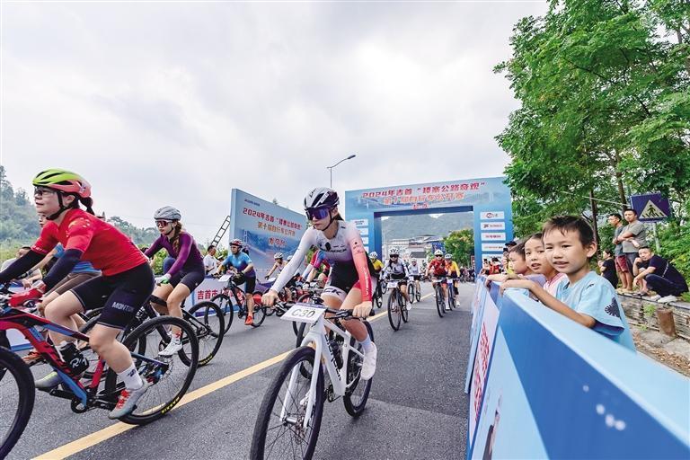 9月21日,2024吉首“矮寨公路奇觀”第十屆自行車公開賽精彩開賽。來自全國各地的600余名自行車愛好者齊聚于此,在川流相間,高聳入云的峽谷中盡享騎行的樂趣。 楊帆 攝