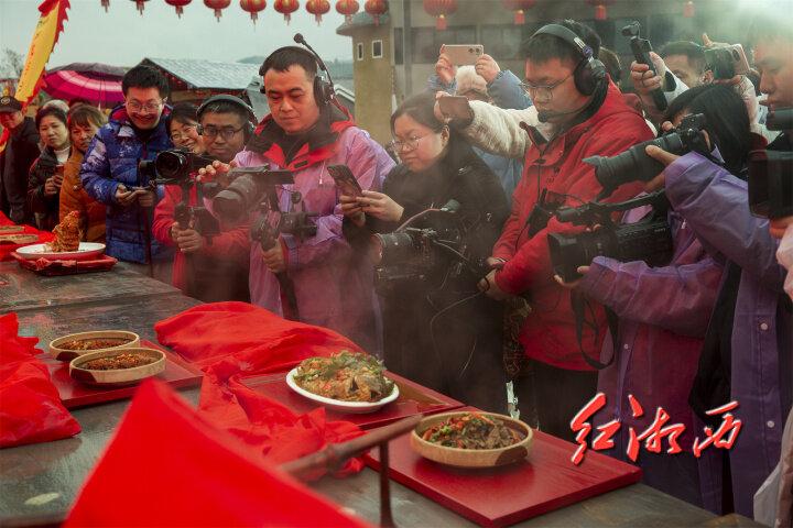此次活動以村(社區)名義組隊,充分調動各方積極性,還鼓勵返鄉青年參與,為活動注入全新活力。碗米坡鎮返鄉創業青年代表田宏飛、李健是拔茅村“鳥語茶香隊”的村廚,他們烹制的土家傳統牛頭宴,一上桌便吸引眾人目光,這道菜不僅展現了土家族新春招待貴客的隆重與熱情,更承載著濃厚的民族文化底蘊。田宏飛感慨地說“村廚村藝大曬”讓他的創業道路有了清晰方向,他希望打造地道村味,讓家鄉美食走上更多人的餐桌。