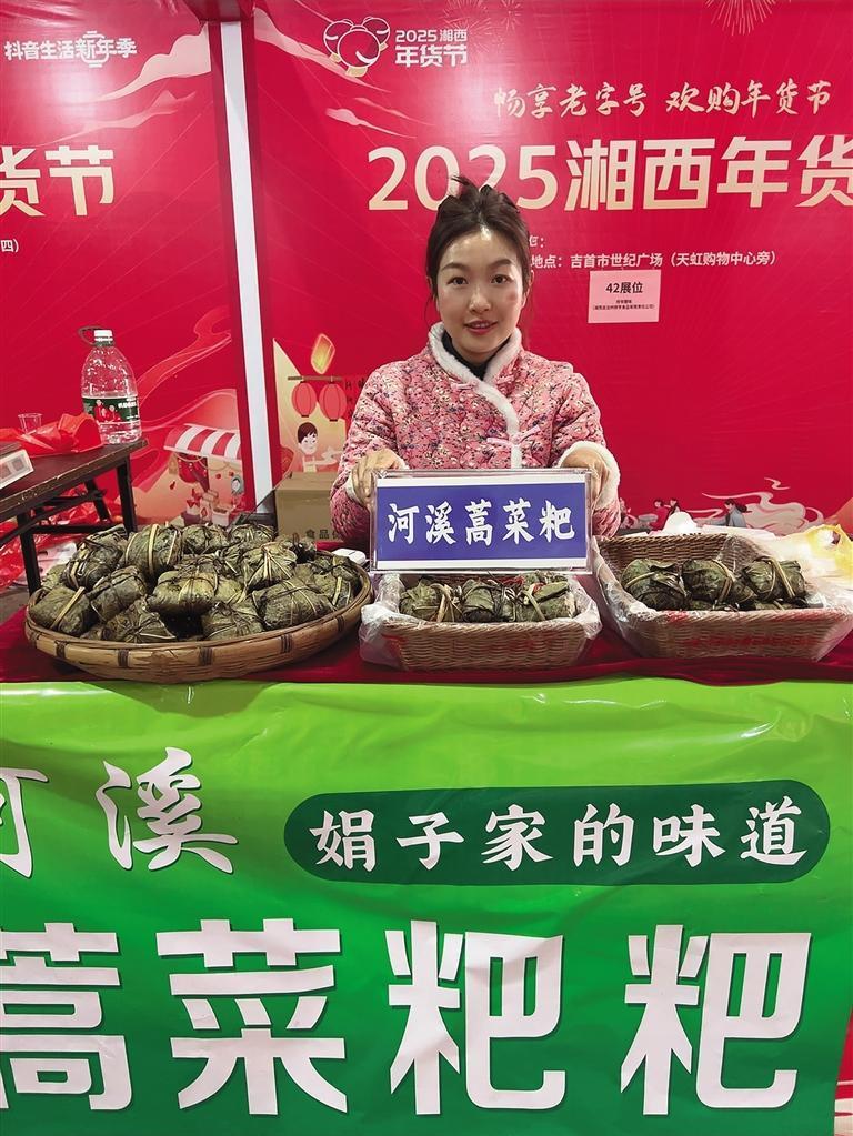 陳慧娟在2025湘西年貨節上賣蒿菜粑粑。 林云 攝