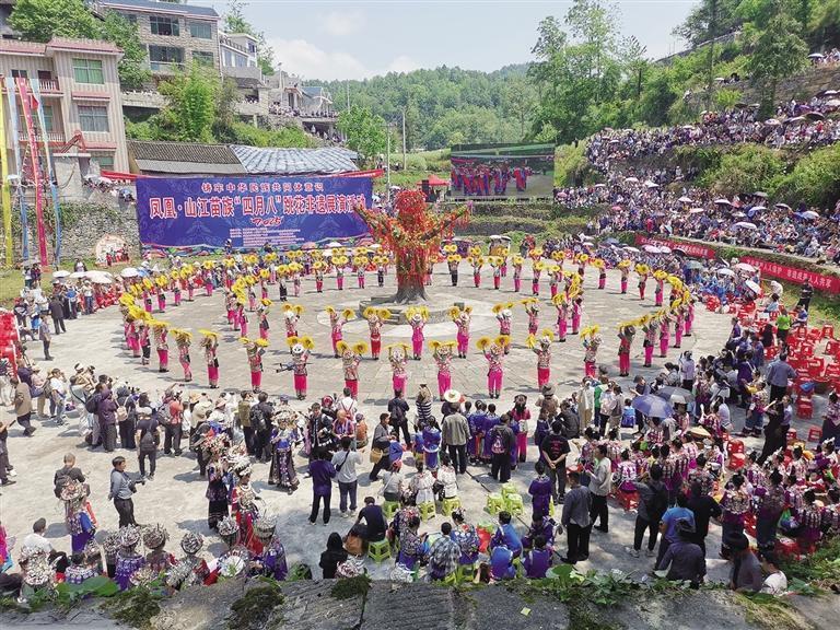 5月5日,農(nóng)歷四月初八,鳳凰縣舉行鳳凰山江“四月八”跳花非遺展演活動。 團(tuán)結(jié)報(bào)全媒體記者 龍文玉 攝