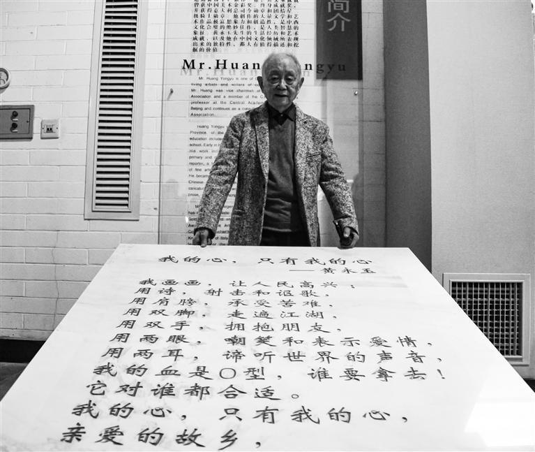 吉首大學(xué)黃永玉藝術(shù)博物館,黃永玉站在自己的作品前。