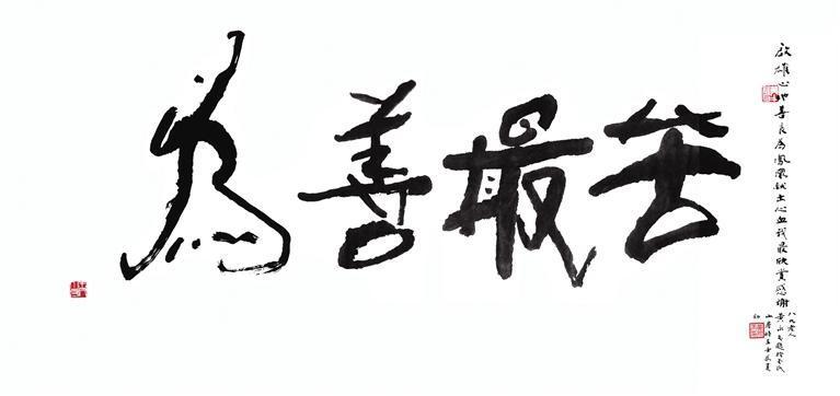 忘年情深,心神相通。二十多年知遇之恩,想到他題寫“為善最苦”時(shí)的笑言:“啟雄啊,小的不夠苦,得寫大的!”墨跡里藏著他一生的詼諧與通透。