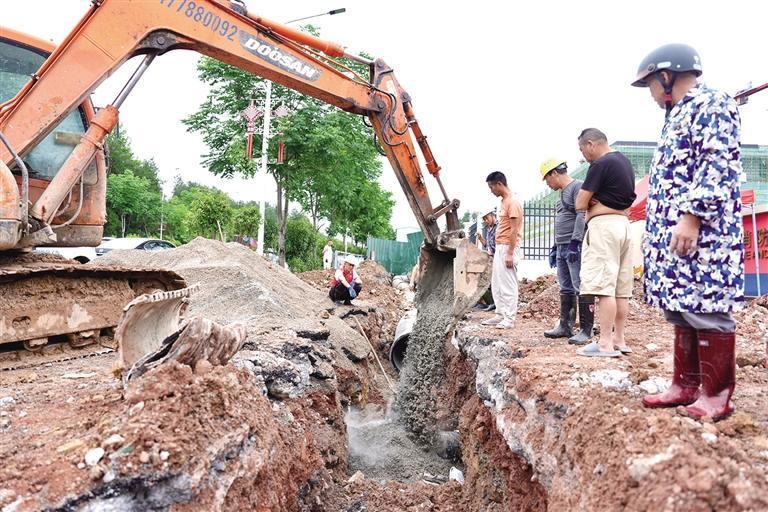 6月21日,龍山縣石羔水廠組織人員到龍山大道路段鋪設管道,積極恢復城區自來水供應。